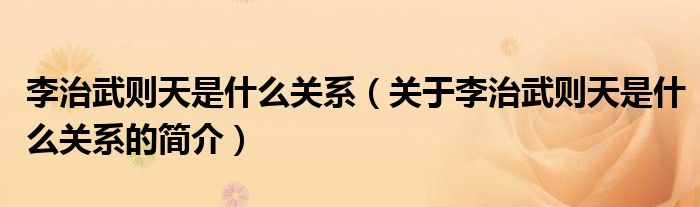本文關于李治武則天是什么關系的簡介就講解完畢,希望對大家有所幫助。