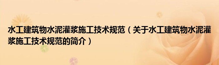 大家好,水工建筑物水泥灌漿施工技術規范,關于水工建筑物水泥灌漿施工技術規范的簡介很多人還不知道,現在讓我們一起來看看吧!