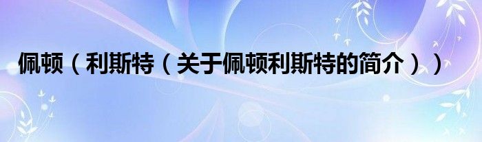 大家好,佩頓 利斯特,關(guān)于佩頓 利斯特的簡介很多人還不知道,現(xiàn)在讓我們一起來看看吧!