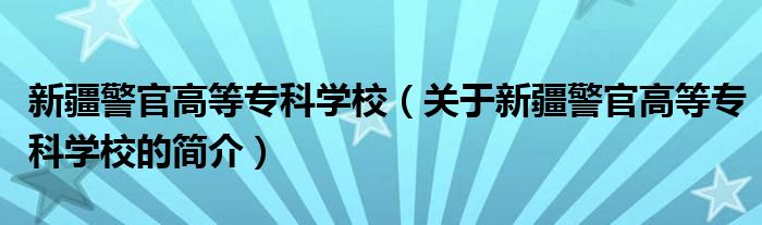 本文關于新疆警官高等??茖W校的簡介就講解完畢,希望對大家有所幫助。