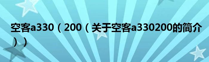 本文關(guān)于空客a330 200的簡介就講解完畢,希望對大家有所幫助。