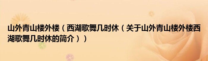 大家好,山外青山樓外樓 西湖歌舞幾時休,關于山外青山樓外樓 西湖歌舞幾時休的簡介很多人還不知道,現在讓我們一起來看看吧!