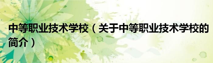 大家好,中等職業技術學校,關于中等職業技術學校的簡介很多人還不知道,現在讓我們一起來看看吧!