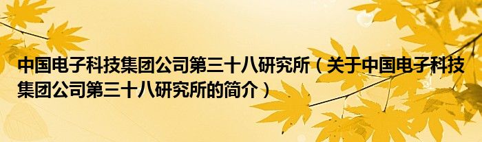 本文關于中國電子科技集團公司第三十八研究所的簡介就講解完畢,希望對大家有所幫助。