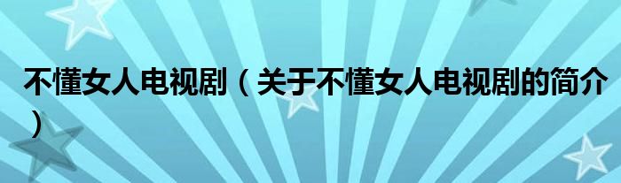 不懂女人電視劇(關于不懂女人電視劇的簡介)