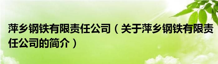 本文關于萍鄉鋼鐵有限責任公司的簡介就講解完畢,希望對大家有所幫助。
