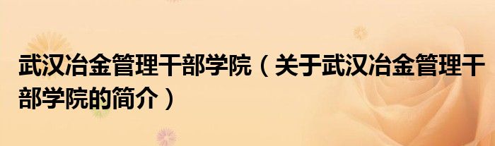 本文關(guān)于武漢冶金管理干部學(xué)院的簡介就講解完畢,希望對大家有所幫助。