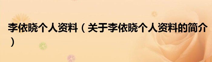 大家好,李依曉個人資料,關于李依曉個人資料的簡介很多人還不知道,現在讓我們一起來看看吧!