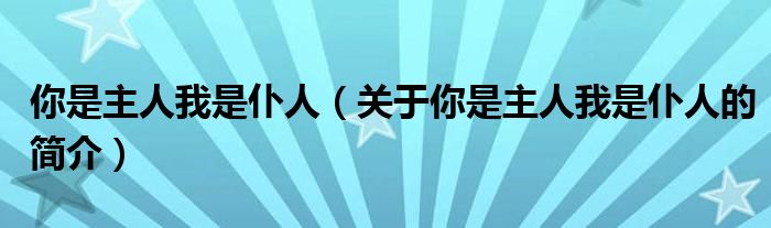 本文關于你是主人我是仆人的簡介就講解完畢,希望對大家有所幫助。
