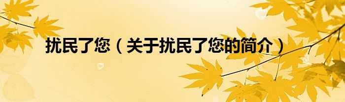 大家好,擾民了您,關于擾民了您的簡介很多人還不知道,現在讓我們一起來看看吧!