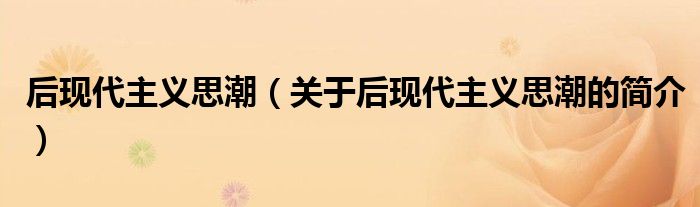 大家好,后現代主義思潮,關于后現代主義思潮的簡介很多人還不知道,現在讓我們一起來看看吧!