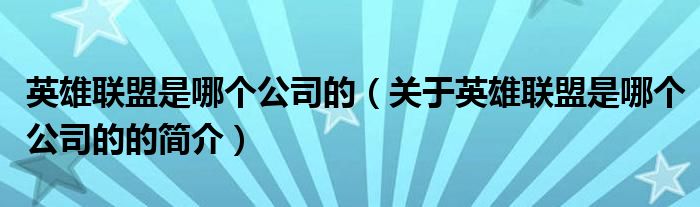 本文關于英雄聯盟是哪個公司的的簡介就講解完畢,希望對大家有所幫助。