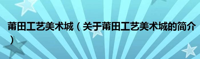 本文關于莆田工藝美術城的簡介就講解完畢,希望對大家有所幫助。