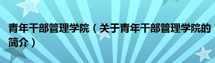 本文關于青年干部管理學院的簡介就講解完畢,希望對大家有所幫助。