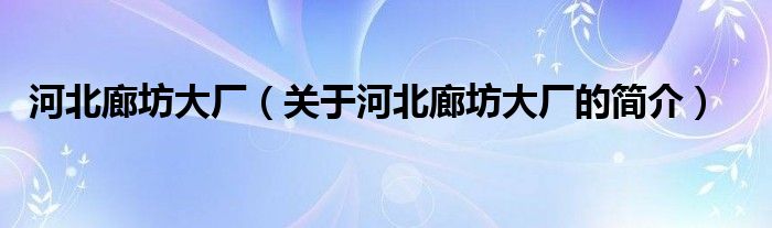 本文關于河北廊坊大廠的簡介就講解完畢,希望對大家有所幫助。
