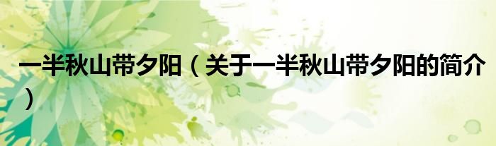 大家好,一半秋山帶夕陽,關于一半秋山帶夕陽的簡介很多人還不知道,現在讓我們一起來看看吧!