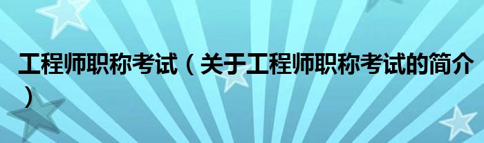 本文關(guān)于工程師職稱考試的簡介就講解完畢,希望對大家有所幫助。