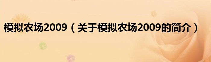 本文關于模擬農場2009的簡介就講解完畢,希望對大家有所幫助。