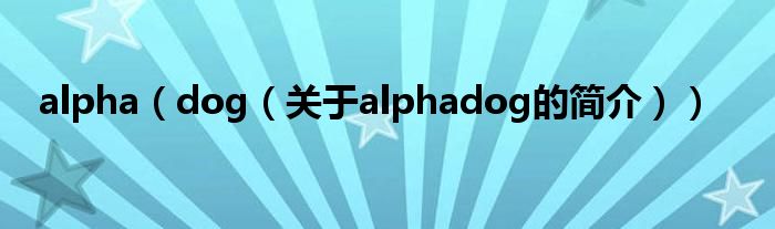 本文關(guān)于alpha dog的簡介就講解完畢,希望對(duì)大家有所幫助。