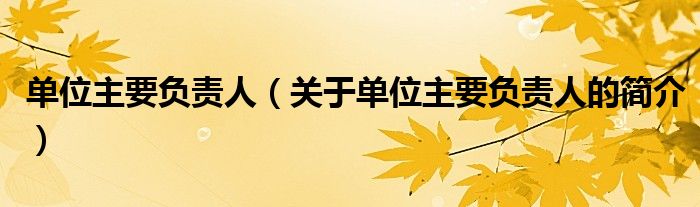 大家好,單位主要負責人,關于單位主要負責人的簡介很多人還不知道,現在讓我們一起來看看吧!