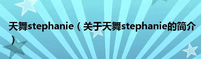 大家好,天舞stephanie,關(guān)于天舞stephanie的簡介很多人還不知道,現(xiàn)在讓我們一起來看看吧!