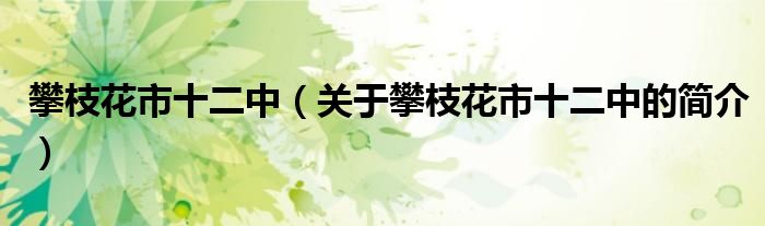 本文關(guān)于攀枝花市十二中的簡(jiǎn)介就講解完畢,希望對(duì)大家有所幫助。