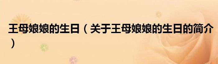 本文關于王母娘娘的生日的簡介就講解完畢,希望對大家有所幫助。