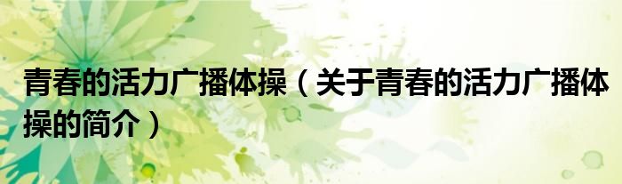 本文關于青春的活力廣播體操的簡介就講解完畢,希望對大家有所幫助。