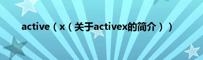 大家好,active x,關于active x的簡介很多人還不知道,現在讓我們一起來看看吧!