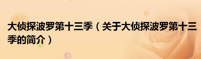 大家好,大偵探波羅第十三季,關于大偵探波羅第十三季的簡介很多人還不知道,現在讓我們一起來看看吧!