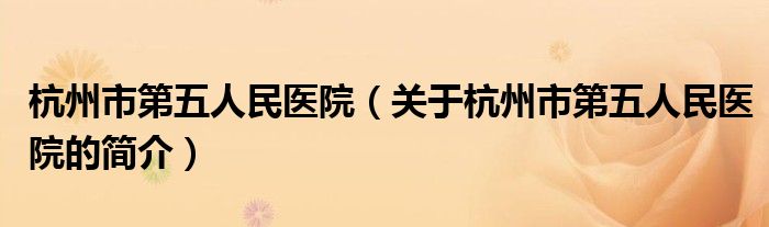 本文關于杭州市第五人民醫院的簡介就講解完畢,希望對大家有所幫助。