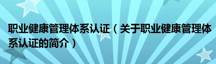 本文關(guān)于職業(yè)健康管理體系認(rèn)證的簡介就講解完畢,希望對大家有所幫助。