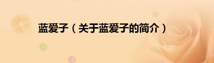 大家好,藍愛子,關于藍愛子的簡介很多人還不知道,現在讓我們一起來看看吧!