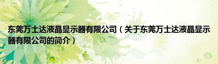 本文關于東莞萬士達液晶顯示器有限公司的簡介就講解完畢,希望對大家有所幫助。