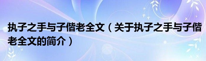 本文關于執子之手與子偕老全文的簡介就講解完畢,希望對大家有所幫助。