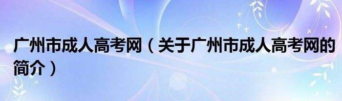 本文關于廣州市成人高考網的簡介就講解完畢,希望對大家有所幫助。