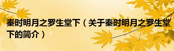 本文關于秦時明月之羅生堂下的簡介就講解完畢,希望對大家有所幫助。
