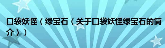 大家好,口袋妖怪 綠寶石,關于口袋妖怪 綠寶石的簡介很多人還不知道,現在讓我們一起來看看吧!