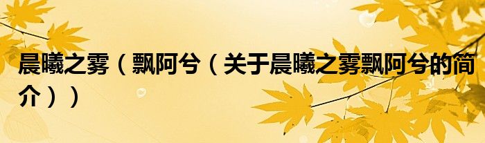 本文關于晨曦之霧 飄阿兮的簡介就講解完畢,希望對大家有所幫助。