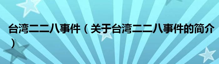 本文關于臺灣二二八事件的簡介就講解完畢,希望對大家有所幫助。