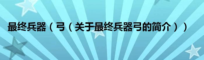 本文關于最終兵器 弓的簡介就講解完畢,希望對大家有所幫助。