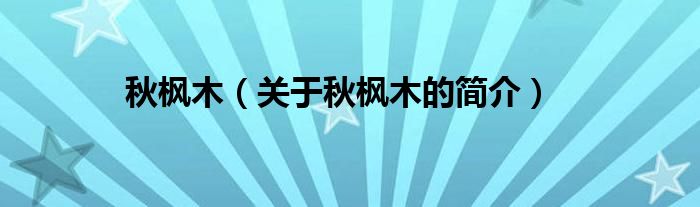 大家好,秋楓木,關于秋楓木的簡介很多人還不知道,現在讓我們一起來看看吧!