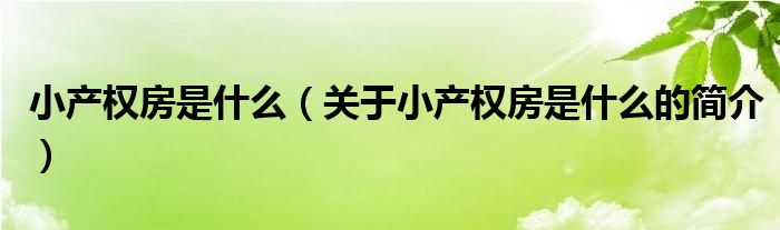 本文關于小產權房是什么的簡介就講解完畢,希望對大家有所幫助。