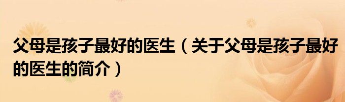 大家好,父母是孩子最好的醫生,關于父母是孩子最好的醫生的簡介很多人還不知道,現在讓我們一起來看看吧!