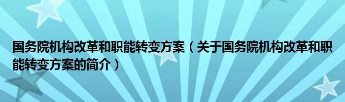 本文關(guān)于國務(wù)院機構(gòu)改革和職能轉(zhuǎn)變方案的簡介就講解完畢,希望對大家有所幫助。