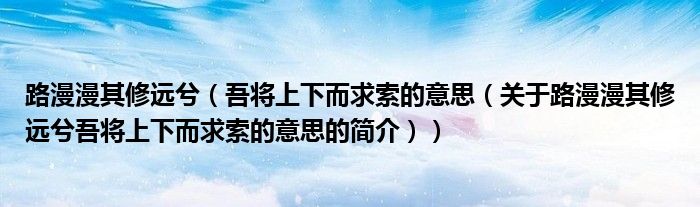 本文關(guān)于路漫漫其修遠(yuǎn)兮 吾將上下而求索的意思的簡(jiǎn)介就講解完畢,希望對(duì)大家有所幫助。