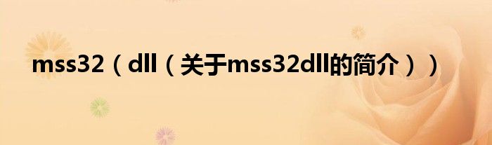 大家好,mss32 dll,關于mss32 dll的簡介很多人還不知道,現在讓我們一起來看看吧!