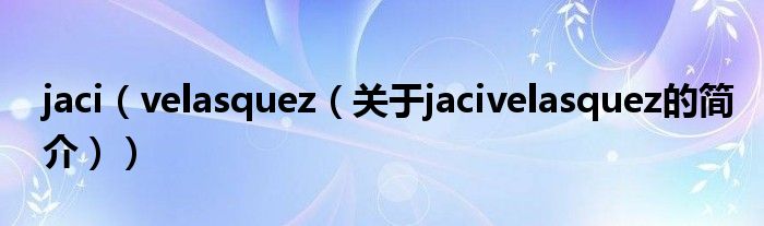 大家好,jaci velasquez,關于jaci velasquez的簡介很多人還不知道,現在讓我們一起來看看吧!