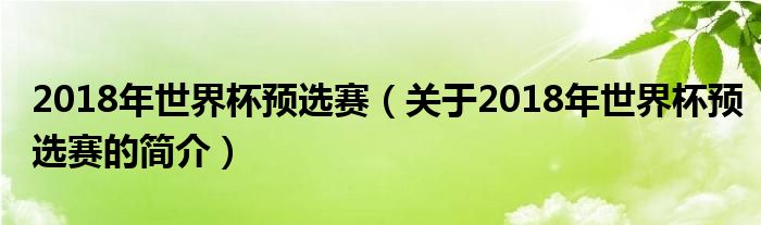 大家好,2018年世界杯預選賽,關于2018年世界杯預選賽的簡介很多人還不知道,現在讓我們一起來看看吧!