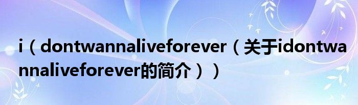 大家好,i dont wanna live forever,關于i dont wanna live forever的簡介很多人還不知道,現在讓我們一起來看看吧!